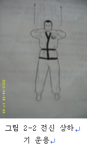 [5]단전에서 시작하여 양손을 털면서 최대한 높이 올렸다가[손등은 마주본 상태] 다시 단전까지 털면서 내린다[그림12-3]