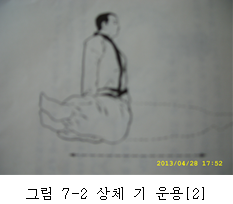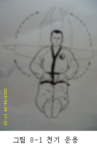 [2] 앉은 상태에서 양팔을 통해 천기지기 받기 동작으로 천기를 받는다[그림 8-1][[1분 정도]