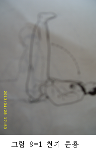 [8]위의 [2]번부터[7]번까지 전체 동작을 1번으로 하여 이를 오른쪽으로 연속3번 행한 후 왼쪽으로 연속 행 한다