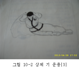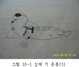[5]엎드린 상태에서 다시 원위치로 돌아눕는다 이때 역시 양 다리를 곧게 편 상태에서 돌아눕는다