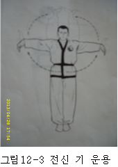 *천기지기 받기를 통해서 단전을 중심으로 하여 온 몸의 기혈을 활성화 시키고 기의 유통을 원활히 해준다[그림 12-5][1부의 천기지기 받기 내용 참조]