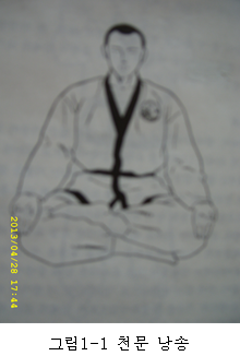 *천문의 낭송 방법은 우선 자세를 안정되게 한다 자세가 나쁘거나 불안정하면 몸의 균형이 기울고 나중에는 어느 한 부분에 압박감을 느끼게 되어 그 곳에 신경이 쓰여 파장이 흐트러진다 등을 수직으로 곧게 펴고 고개를 든 상태에서 턱은 약간 몸 쪽으로 당 긴다 자세를 의식적으로 취하면 힘이 들어가 몸이 뻣뻣해지므로 어깨와 전신에 힘을 빼고 자연스럽게 한다 양 손은 무릎 위에 놓고 손바 닥은 위로 향하여 편다 천문은 金科玉條(금과옥조조) 같은 글귀이므로 편안하고 고요한 마음으로 일페의 잡념을 버리고 한 글자 한 글자를 머리속에 새기며 아랫배에 울려나오는가장 평온한 목소리로 호흡이 가쁘거나 남지도 않게 한 호흡에 한줄씩 평탄한 음률로 낭송 한다