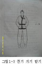 *천기 받기와 지기 받기는 하나의 동작이므로 연속동작으로 하여야 하며 지기 받기 로무리 한다