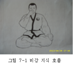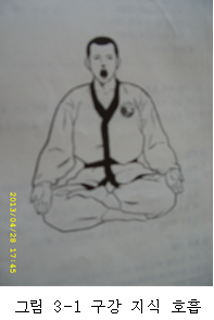 *앉아서 입을 크게 벌려 복부가 팽배하도록 숨을 들이 마후 단전에 기를 모으고 무리 없이 참았다가 입으로 서서히 내쉬는 호흡법이다