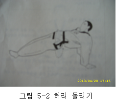 *허리를 틀 때에는 호흡을 내쉬면서 한다