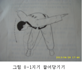 *상체가 최대한 굽혀졌을 때 그 다음에 양손을 바닥에 닿지 않을 정도로 서서히 내려서 지기를 크게 끌어 모은다